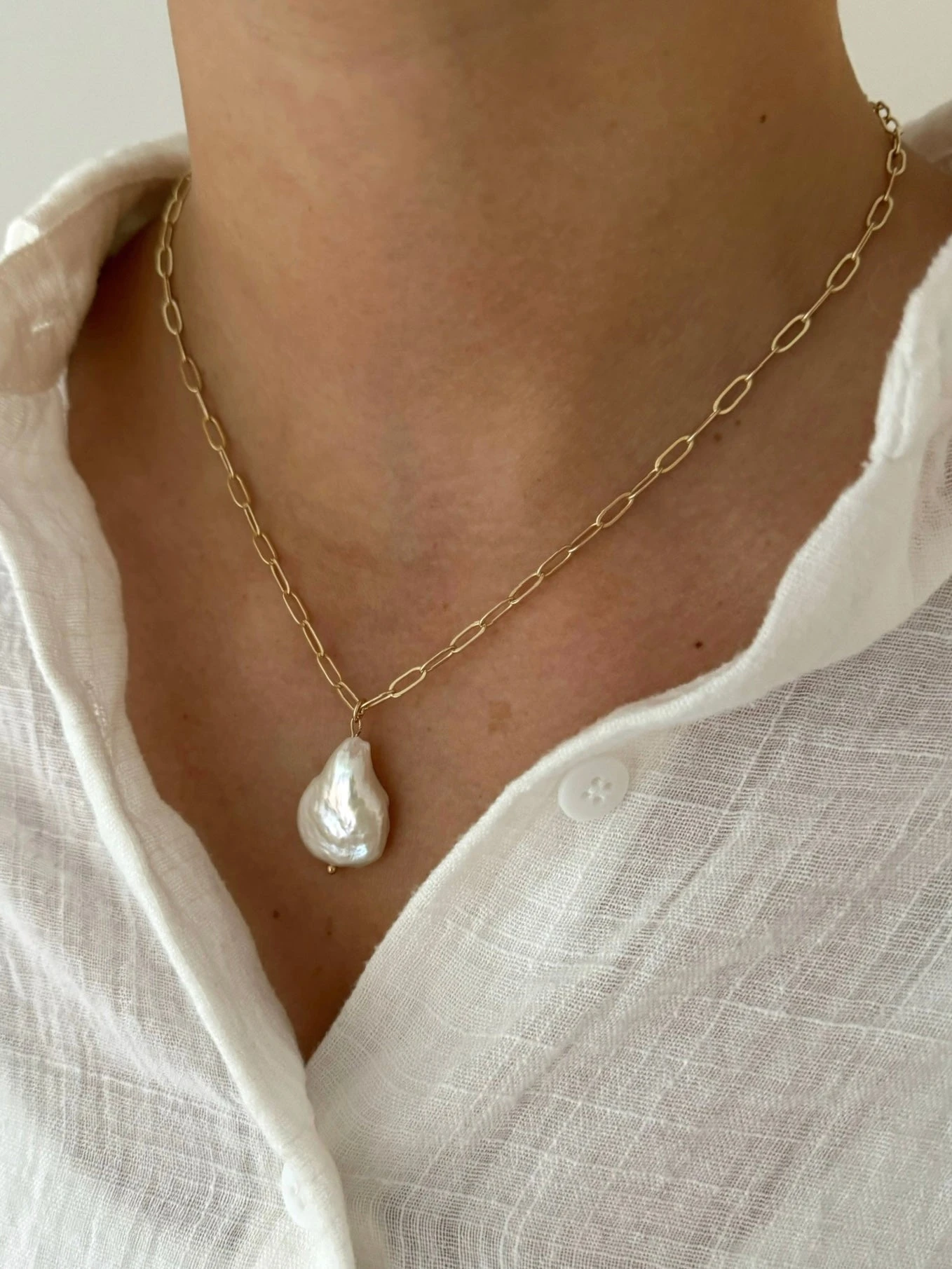 18in long, 14k gold filled chain with freshwater pearl drop